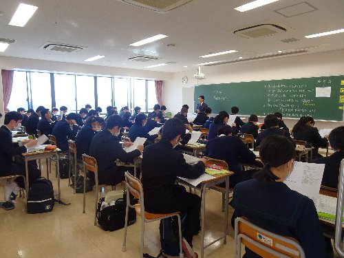 高校の入学予定者を対象にした入学前オリエンテーションを各クラスごとで実施しました。クラス分けと芸術の選択科目の確認後、各ホームルーム教室に入り、担任から学校生活についてのガイダンスと4月実施予定の健康診断と入学式についての説明を受けてもらいました。例年なら昼食を挟んでホールに集合し全体説明もするのですが、すべてクラスごとによるガイダンスで短時間で終了しました。新型コロナウイルス感染拡大防止のため、健康診断、入学式も例年とは違い、時間を短縮したかたちの実施を予定していて、すべてが異例づくめとなっています。