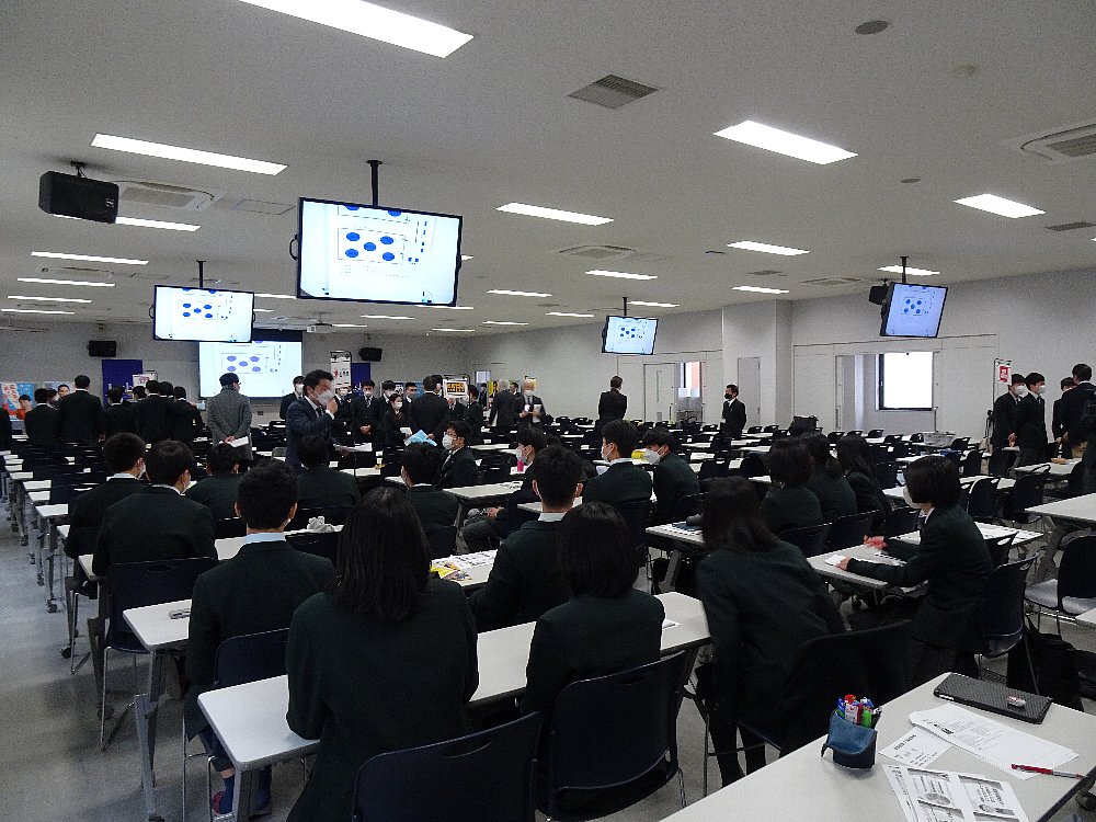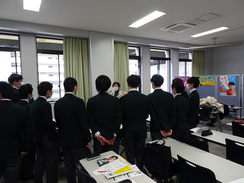 中学3年生を対象に今年で3回目となる模擬選挙を実施しました。2016年より選挙年齢が18歳に引き下げられたことにより、中高生への主権者教育の重要性が高まっています。今年もぜひ実施したいと各政党にお願いしたところ、非常にお忙しいにもかかわらず現職国会議員5名、前職1名をはじめ大阪府議、市議など、合わせて国政政党9党の方々に朝早くから来校いただくことができました。政策等を中心に中学生にわかりやすくお話しいただき、ディスカッション、投票、講評と朝から午前中いっぱいお付き合いいただいたことに感謝申し上げます。生徒達も実際の政治家の先生方の話に関心をもって真剣な眼差しで聞いていて、大変貴重で有意義な時間になったと思います。