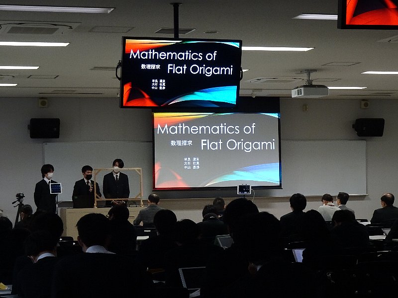 19日(土)放課後、高校一貫Ⅰ類・スーパー・薬学医療系進学コース2年生が取組んでいます探究プログラム学習ガリレオプラン研究発表会を開催しました。昨年同様今年もコロナ禍ということで、聴講はHR教室、特別教室に分散しての実施でした。人文科学、社会科学、情報科学、数理探究、生物、化学、物理ゼミにイノーベーションゼミ(大阪工大工学部研究室)を加えたゼミから選考された13チームが、春から取り組んできた研究成果を発表しました。先月にゼミごとの発表会があり、そこから選考されたとあって、レベルの高い発表ばかりでした。審査は常翔学園理事で大阪工業大学名誉教授の川田先生、学園顧問で大阪工業大学名誉教授の里村先生、大阪工業大学教務部長の椋平教授、摂南大学教務部長の伊藤教授、摂南大学教務部教職支援センターの吉田教授にお願いしました。選考の結果、生物ゼミの研究テーマ「アリの鏡像認識」のチームが最優秀賞、物理ゼミの研究テーマ「色素増感太陽電池に関する研究」が審査員特別賞を受賞しました。研究内容のレベルが高く、熱心に取り組んできたことが窺える素晴らしい発表でした。ガリレオプラン探究に参加している1年生も聴講しましたが、次年度に引き継いでもらいたい研究もあり、次年度も頑張って欲しいと思います。(こちらもご覧ください)