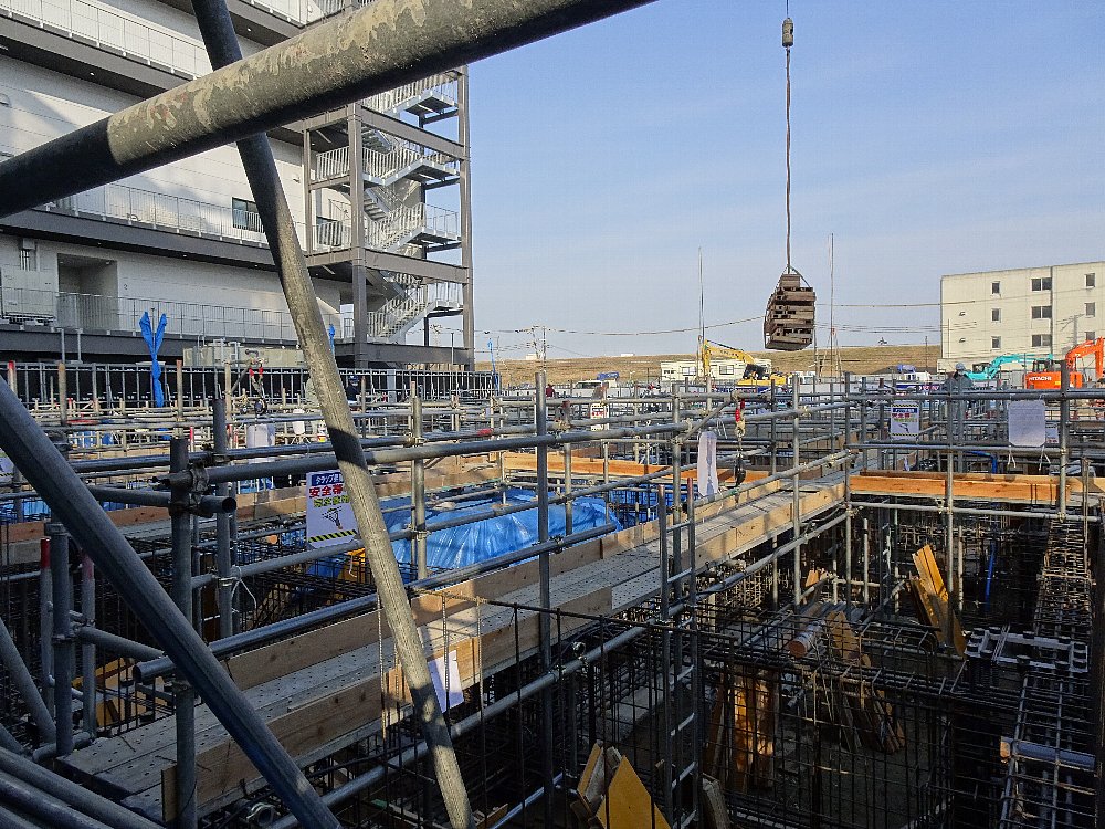 現在新東館の東隣で大学部室センターの工事が進んでいます。旧東館(中高体育館)東隣にある建屋の建替え工事です。その5階部分には本校吹奏楽部の音楽練習場が設置される予定で、今年の10月ごろから使用できる計画です。その後、アーチェリー上も含めた第1部室センターの改修工事に着工する予定です。一方、新東館の北側は、国土交通省による高規格堤防(スーパー堤防)にするための地盤改良工事が進んでいます。これはまだまだ時間がかかりますが、スーパー堤防が完成しますとその上を人工芝グランドにする計画で素晴らしい環境が整います。