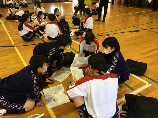 その後、クラス対抗室内オリンピックゲーム。6種類のゲームをクラス対抗で実施し、2日目に実施するP1グランプリの得点と併せて順位がつきます。コロナ禍で接触ができず、どちらかというと少し地味なゲームばかりでしたが、生徒たちはとても楽しんでいました。その後、室内リクリエーションを挟んで夕食を摂った後は、クラスに分かれて、P1グランプリの練習と大変盛りだくさんで、充実した1日を過ごし、成長できたことと思います。特に今回大切にしたのは、振り返りです。生徒たちは「どう感じたか」「どう成長できたか」を考え、1日の行動を振り返りました。これが成長を大きく促すことに繋がります。