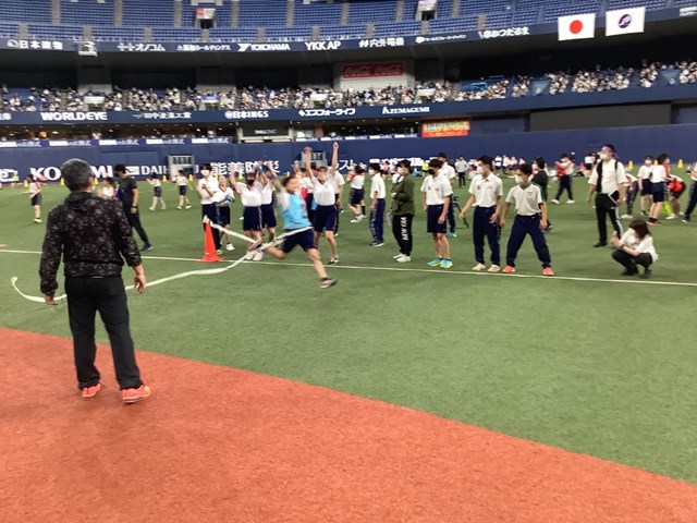 ドームの中で一生懸命走り、飛び、友を応援する生徒たちの姿を見て、本当に感動しました。一つの目標に向かって全員で頑張る姿は見る者の心を打ちます。どの生徒も笑顔にあふれ、本当に楽しそうでした。やはり学校行事はこうでないと!と感じました。