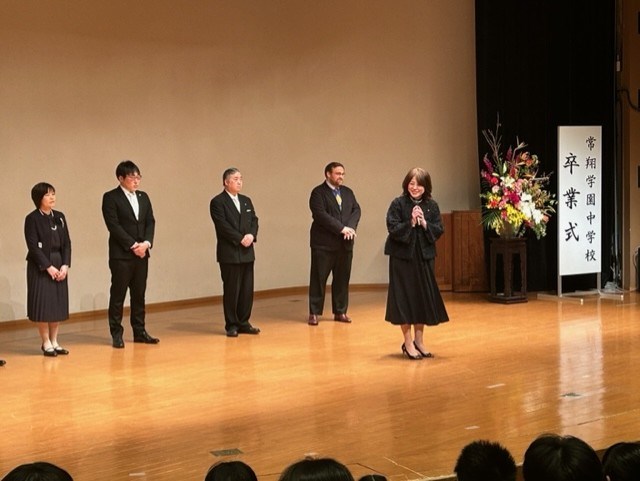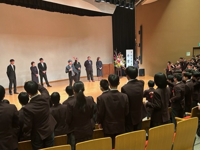終了後は、外で記念写真撮影の後に、再びホールで3年間の記録ビデオを見て、先生方一人ずつの挨拶と卒業生による花束と色紙の贈呈と常翔学園中学生として最後の一日を過ごしました。先生方の言葉も、生徒の挨拶の言葉も大変暖かくてステキな式となりました。