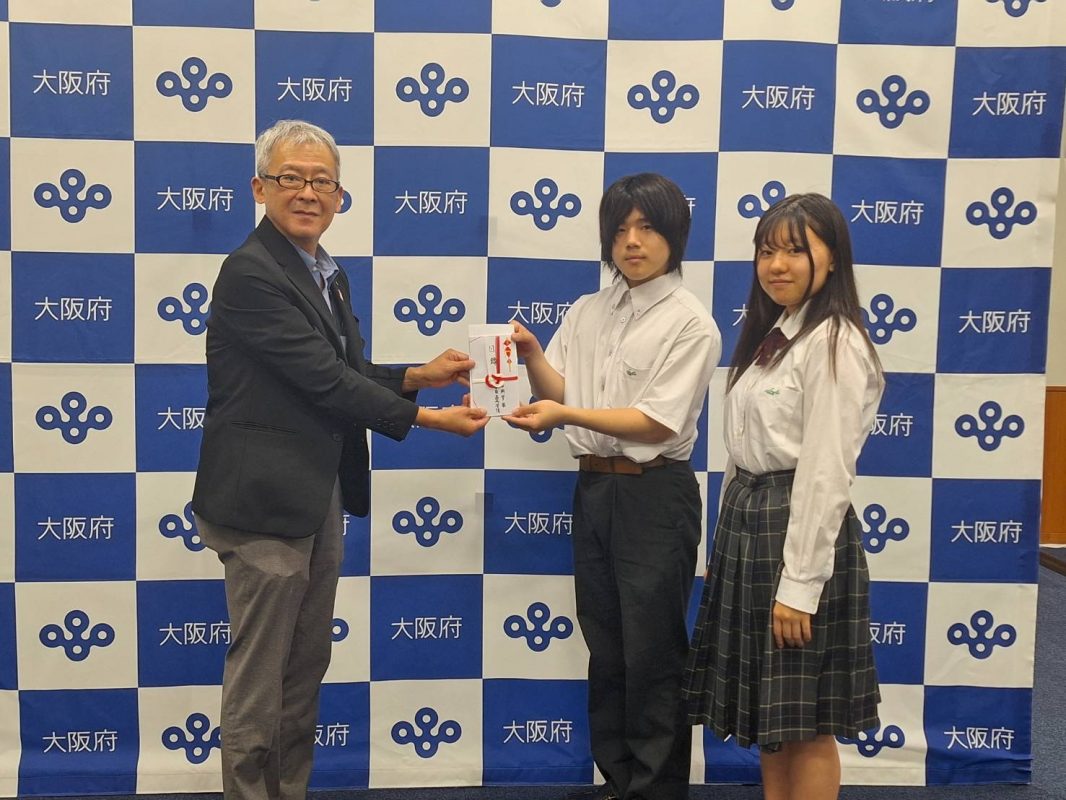 チャリティーコンサート及びその前のチャリティー期間で集まった募金のうち、82,943円を台湾東部地震の復興支援のために役立ててもらおうと、昨日の芸能鑑賞の後、生徒会の二人と共に大阪府庁まで行ってきました。