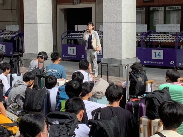 出発前に集合し、私からの挨拶の後、旅行者の添乗員さんや看護師さんの紹介がありました。私からは、ほとんどの人にとって富士山登山は人生最大のチャレンジになるだろうけど、ケガや事故の無いように、体調が悪い場合は早めに申告し、決まりを守って楽しんで欲しいと伝えました。私は学校に残って留守番ですが、生徒たちは生涯の思い出に残る、楽しい登山にしてもらいたいと思います。