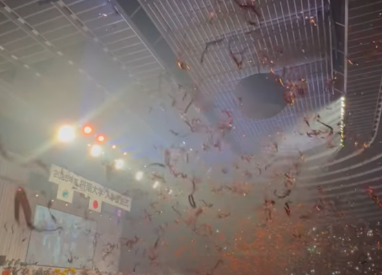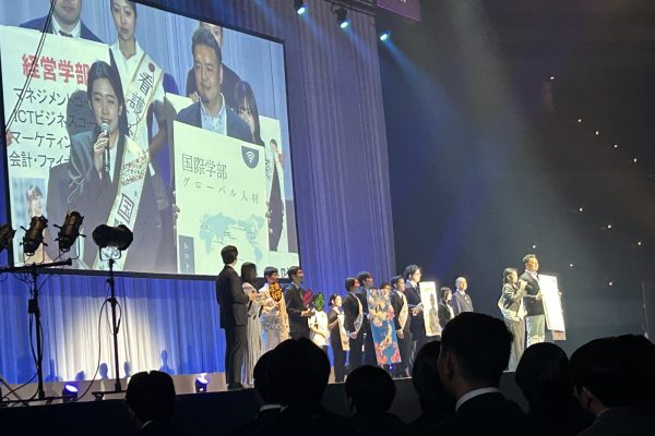 入学式自体の内容は普通で他校と同じような感じですが、摂南大学のステキな所は、式後の学生による、新入生歓迎行事です。在校生が歌やダンスで新入生を歓迎してくれます。また学部ごとの説明と学生・教員による歓迎の言葉、そして部活動紹介。何ヶ月もかけて準備をしたものと思いますが、学校を挙げて新入生を歓迎しようという大学の意気込みが伝わります。中には芸能人を呼ぶ大学もあるようですが、これはこれで大変すてきな行事だなと感じます。本校の入学式後の生徒による歓迎行事もこれをヒントにさせてもらっています。