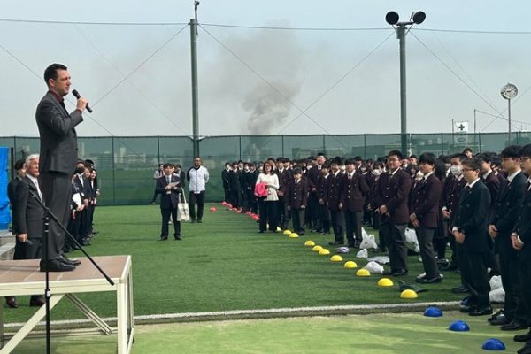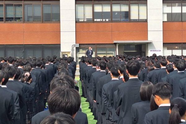 始業式は校長の挨拶から始まりましたが、年に一度の集会なので皆さんに仲良くなってもらおうと、ハイタッチで始めました。スピーチの内容は、今年、生徒主体の教育という観点から、生徒指導部は生徒支援部へ、進路指導部は進路支援部へと変わることを説明しました。また13日に万博が開幕し、海外からさらに多くのインバウンドが来られることになるが、これは一過性のものではなく、さらにグローバル化がすすむこと、それに併せて本校のグローバル教育も進み、高校に新しくグローバル探究コースができたこと、今年も2人の留学生が本校に来てくれたこと、修学旅行の行先が中高共に変わり、新しい修学旅行が始まる事などのお話をさせて頂きました。