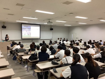 また、本日は高校1年生の生徒と保護者を対象にグローバル探究コースと薬学看護医療系コースの説明会も開催しました。こちらも予想以上に多くの方にお越し頂きました。この両コースは本校が大変力を入れているコースであり、お越し頂いて絶対に間違いはないコースなので、よくお考えの上、是非とも希望を出して頂きたいと思います。