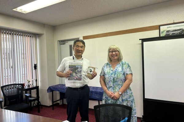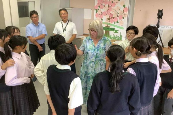 説明の後、記念品の交換をして、その後一緒に学校を案内して回りました。可能なクラスでは生徒たちとも交流をしてもらいました。キャロル先生には大変満足して頂いたようで良かったです。