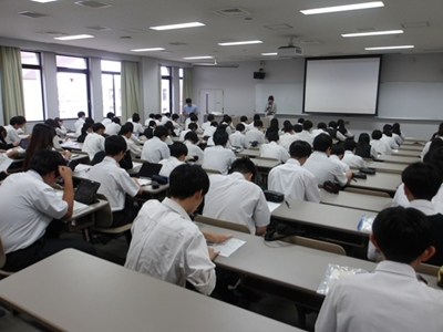 今日は高校2年生は中間テスト最終日。試験が終わった後で、それぞれのコースごとに修学旅行の結団式を行いました。