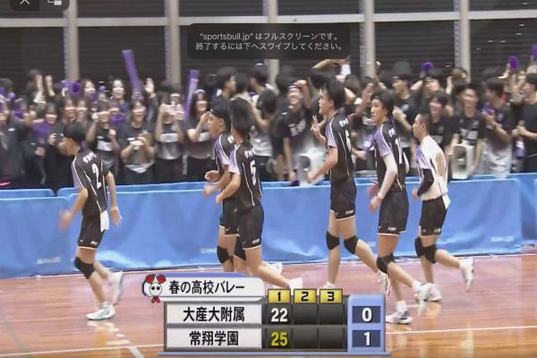 幸先よく1セットを取りましたが、2セットは取り返され、しかも3セット目も劣勢でした。しかし、本校の部員たちは最後まであきらめずに最大5点差をひっくり返し、そのままの勢いで最後まで勝利まで突き進みました。途中からは会場全体の雰囲気も常翔押せ押せ!で盛り上がっていたように感じます。