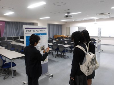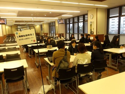 説明会の内容は前回とほぼ同じですが、本校生の広報委員会である「常翔プロ」が生徒目線によって本校の特色の説明をしてもらい、大変好評を博していました。彼らは校舎間の誘導や案内、生徒相談ブースでも活躍してくれました。その他、薬学看護医療系コースやグローバルコースの説明会、化学や生物研究室にも多くの中学生が来てくれて、賑わっていました。秋も深まり、来年度の生徒募集もいよいよ佳境に入ってきた感がします。