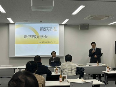 本校には学外団体として、卒業生の組織「校友会」があります。また現役の保護者の会「後援会」さらに、後援会役員のOBOG組織「翔友会」と全部で3つの組織があります。この日は翔友会主催の摂南大学農学部見学会に参加してきました。 農学部は枚方キャンパスにあり、とても新しくてきれいな校舎にあります。学校の説明の後、校舎見学、農場見学をさせて頂きました。農業は私たちの生活の一番身近なところにあるものですが、この日は農学の最新の設備と最新のテクノロジーを見せて頂き、勉強になりました。また久しぶりに懐かしい方々にもお会いできて、うれしかったです。