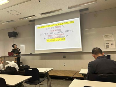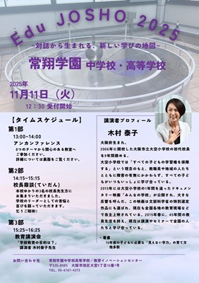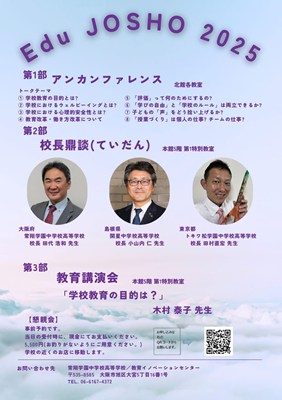 本校は一人一台のiPadを導入した2017年より、毎年外部の教育関係者に対して公開授業を開催してきました。8年間続けたわけですが、今年度は公開授業は実施せず、研究会のみの開催としました。これは全て、本校の教育イノベーションセンターの企画案によるものです。外部からは、小学校、中学校、高等学校の校長先生を中心に30名以上の方にご来校頂きました。第1部では8つのテーマに分かれたアンカンファレンスにて意見交換会、第2部では私を含めた3人の校長先生による校長鼎談、最後の第3部では大阪市内にある大空小学校で校長先生をされていた木村泰子先生の講演と続きました。