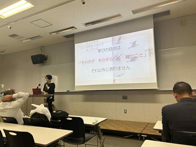 ご来校頂いた方に後でお聞きしたら、最初から最後までどの会も面白かったと大変満足度の高い研究会になりました。また多くの学びがあり、来た甲斐があったともお聞きしました。特に最後の木村先生の講演は、胸に突き刺さるものがあり、多くの方々が涙を浮かべて聞かれていたようです。ただし、今回来たくても来られなかった多くの方々からは、公開授業もないのにどうして平日の実施なのか、という声もお聞きしました。中学校や小学校の先生方もこられているので、本校の宣伝にもなります。来年度は公開授業があるかどうかはわかりませんが、開催日程も含め、内容を吟味してもらいたいと思います。