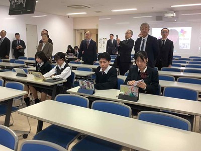 今回は、グローバル探究コースの授業の様子を見て、校舎内を見学して頂き、最後に私から本校のこの数年間の学校改革についてお話をさせて頂きました。昨日は奈良県の西大和学園中高を訪問され、この後京都に行かれるそうです。他校を見学し、そこの校長先生の話を聞くというのは大変大事なことだと思います。本校も年末に首都圏の学校訪問を予定しており、勉強をしてきたいと思います。