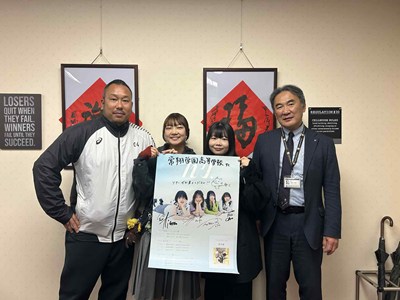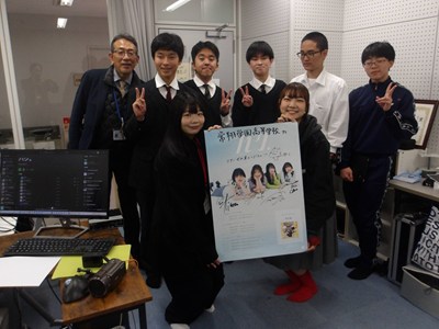 実は高校卒業後、音楽関係の専門学校に進学し、そこで結成した女子4名のバンド「ハク。」として活動し、以前もCDを出したからと持ってきてくれたことがありました。今回は9月にトイファクトリーからメジャーデビューして、世界を回りながらライブ活動をしているという報告です。サイン入りのポスターも持ってきてくれました。また実は計画していたことなのですが、急遽、放送部が行っているお昼の放送にも出演してもらい、曲も披露してもらいました。来年は紅白も目指すそう。卒業生の活躍は本当にうれしいし、本校の誇りです!