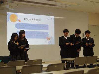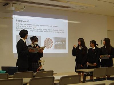 高校2年生でガリレオプランを履修している生徒たちの中で、希望者を募り、台湾の姉妹校である彰化女子高校と研究交流をするプログラムがあります。ガリレオプランは1年間、ゼミに所属し、チームで一つのテーマに基づいて研究し、その成果を発表したり最後は論文にまとめる科学探究授業です。10チームの希望チームを募り、台湾EXCHANGE PROGRAMにチャレンジしてもらっています。ただでさえ、オンラインによる発表は声が聴きづらかったりと難しいのですが、相手が台湾なので英語による発表となります。生徒たちにはかなりハードルが高いことにチャレンジしてもらっています。なかなか時間がなくて、充分な練習もできずに下を向いて原稿を読むだけのチームが多かったのはもったいなかったです。対照的に、台湾の生徒たちはかなり上手に英語を話します。国際的な英語力のスタンダードを感じ取ってもらい、今後のモチベーションにつなげてもらいたいと思います。