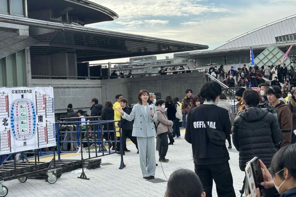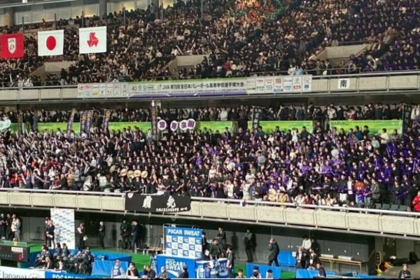男子バレーボール部の全国大会(春高バレー)が千駄ヶ谷の東京体育館で開催され、応援に行ってきました。本校からは前日の4日から、80名参加の吹奏楽部から各部活動を中心に総勢300名、バス8台に分乗し前泊して応援に参加してもらいました。本校にとって春高バレーは初出場であり、見るものすべてが新鮮で、東京体育館の大きさや、会場の混雑ぶりなど、全てが初めての体験でワクワクしました。