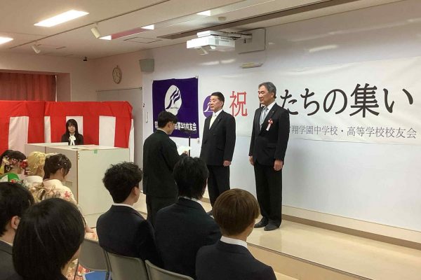 今年も2年前に巣立った卒業生に集まってもらいました。式典では私と校友会会長、それに来賓のスピーチがあり、その後、卒業生代表が感謝と今後の決意をスピーチしてくれました。また、懇親会では久しぶりに集まり、中高時代の話に花を咲かせたり、写真を撮ったりして、楽しい時間を過ごしてもらいました。学校は卒業生にとって、いつでも帰れる故郷の家のような存在でありたいと思います。
