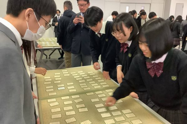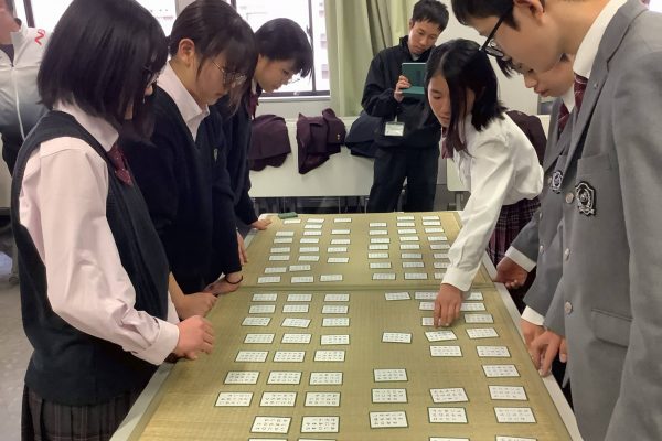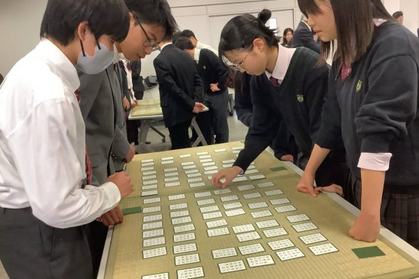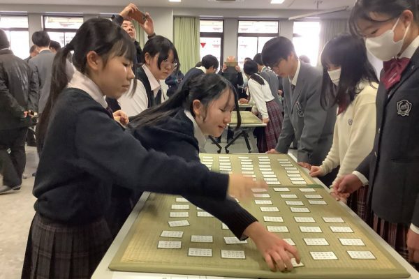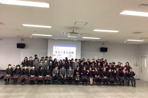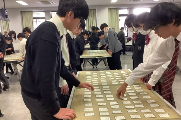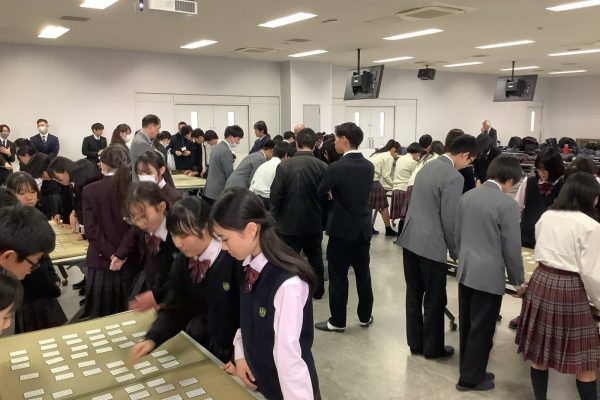 本日は、常翔啓光学園中学校との伝統の百人一首交流戦です。交互に訪問してきて、今年は常翔啓光さんが本校に来られる番です。これまでの対戦成績は6勝6敗。今日勝った方が、勝ち越します。という訳で、生徒たちにとっては絶対負けられない戦いでした。なので、たくさん練習してきたようで、結果は9対1で本校の圧勝となりました。