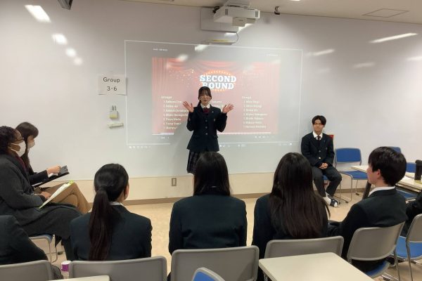 予選では6つのグループに分けて、一人2分間ずつスピーチをして、それぞれのグループで1位の生徒たちが決勝へと進みました。なので、決勝ではなかなか聞きごたえのあるスピーチが続きました。多くの生徒が「この一年間で学んだ大切なこと」や「修学旅行のMoGで学んだ大切なこと」について語っていましたが、どの生徒も一生懸命に練習した成果が分かるようなステキなスピーチでした。特に印象的だったのは、他の生徒が発表している時真剣に聴きながらも、その登場の前後で拍手や労いのジェスチャーなど、彼らがみんなで場を盛り上げようとしている姿がとても素敵で暖かい雰囲気がありました。