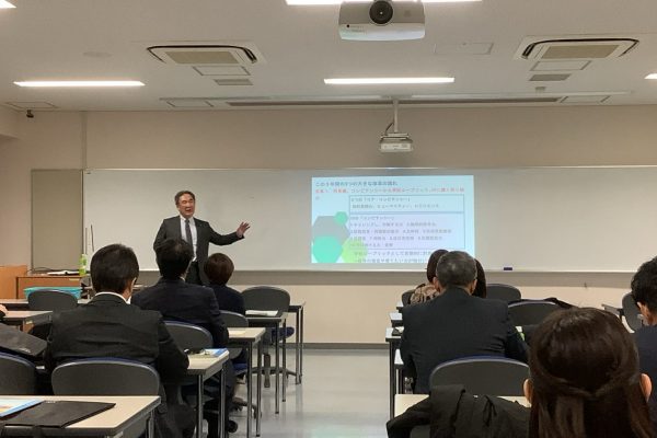 まずは、北館を中心に校内をご覧いただき、その後で私からは本校の学校改革について、根来校長補佐からは生徒募集やJOSHO+、部活動の取り組みについて説明をさせて頂きました。わが国は全国的に少子高齢化が進んでおり、生徒募集はどこも大変深刻な問題になりつつあります。そんな中でこのようにして非常に熱心に勉強される姿に感銘を受けました。関西の私学が盛り上がることを期待しています。