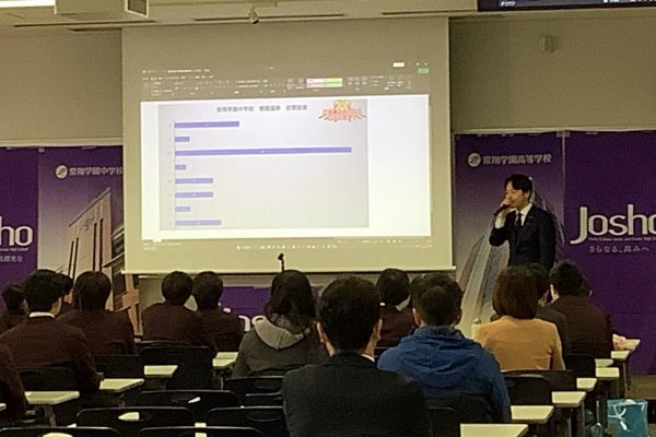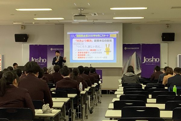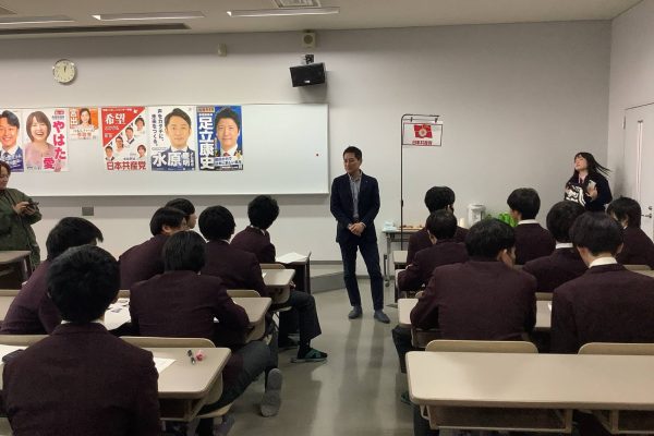 模擬選挙は本校独自の行事として、長年取り組んでいるものです。我が国の教育に不足している、いわゆる公教育を本物の政治家を招いて実施したい。そう考えた現場の教員によって始められました。今回は直前に衆議院解散・総選挙というビッグイベントがあり、この行事自体の実施も危ぶまれましたが、何とか実施できて良かったです。