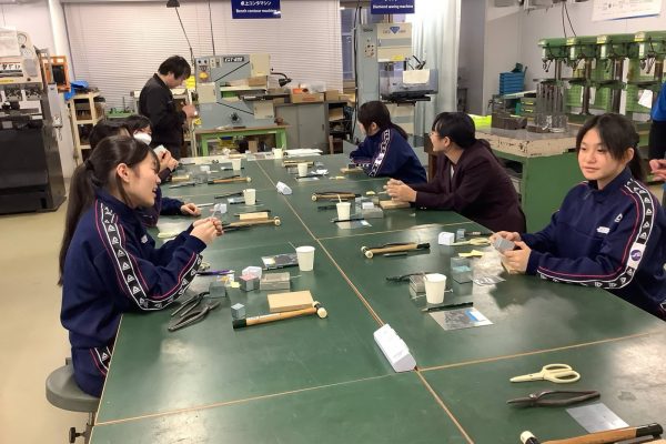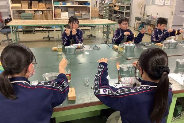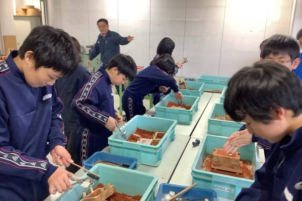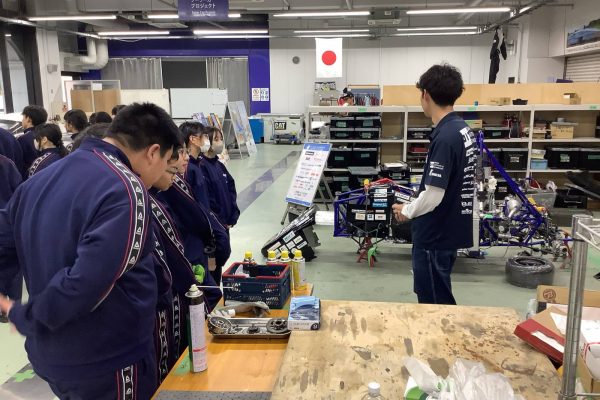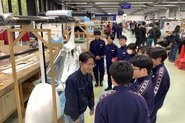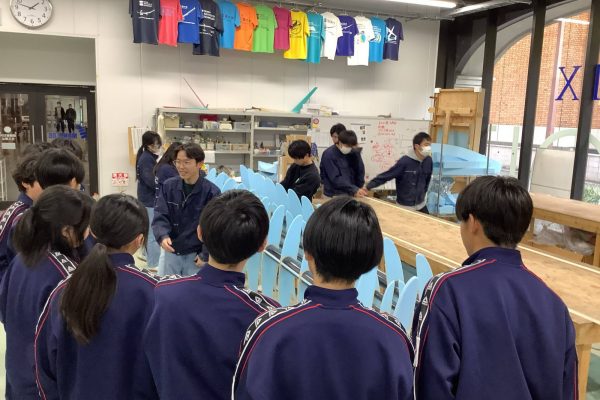 今回は、ラジコンロボットカー、電子楽器、オルゴール、逆立ちゴマ、バケツキャンドル、とんぼ玉、陶芸食卓食器、キーホルダートップ、てん刻印鑑、の班に分かれてものつくり体験をしました。作業中は、非常に集中して取り組み、完成した時は満面の笑顔で喜んでいました。完成品はお土産として持ち帰れるので、みんな記念になったことと思います。また2つのグループに分かれて、人力飛行機やソーラーカー、フォーミュラーカー、ロボットなどを制作しているモノラボアネックスの見学や講義も行いました。講義では本校の卒業生もおり、生徒たちも親しみを持って参加することができました。