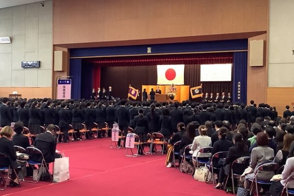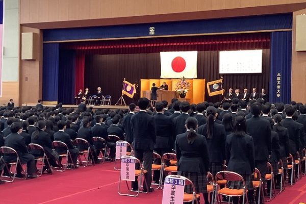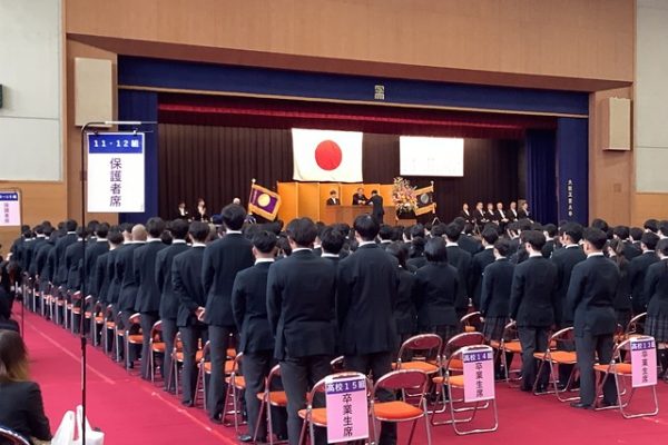 快晴とまではいきませんでしたが、なんとか曇り空で雨は降らずに済みました。実は入学式も雨だった学年なので、良かったです。式自体は大変スムーズに進行し、暖かく感動的な式となりました。特に答辞の後の、代表生徒たちによるご家族への感謝の手紙を読むシーンでは読んでいる生徒たちだけでなく聞いている私たちも思わず感極まり涙してしまいました。